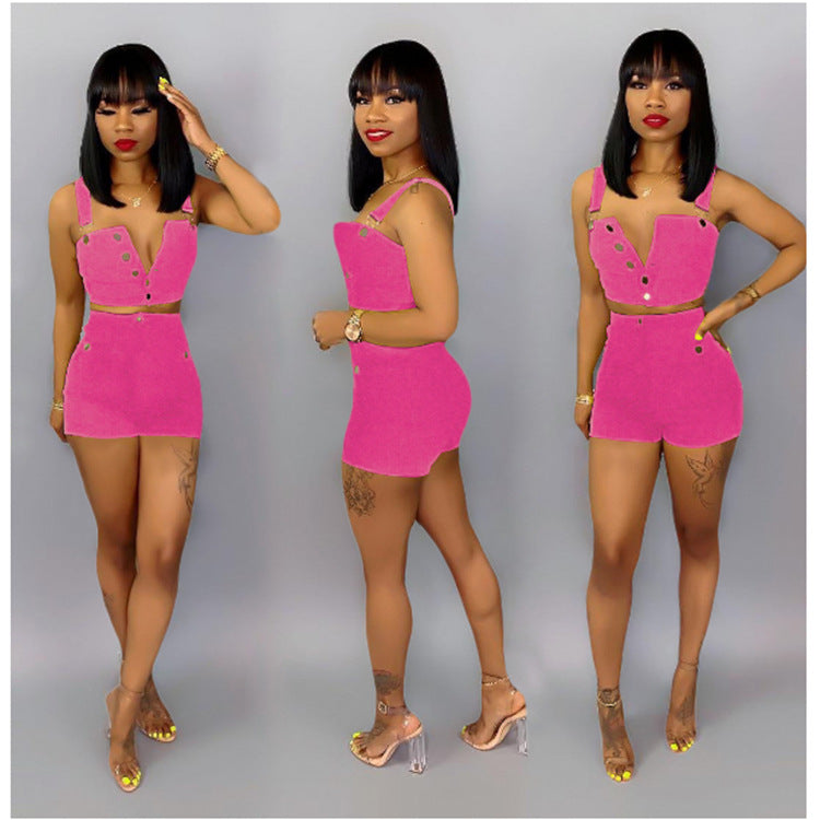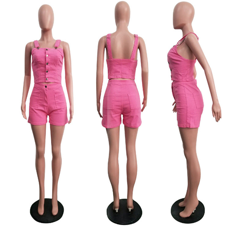 Summer Sexy Slim Denim Sling Top Super Short Shorts 2Pc (CL10213)