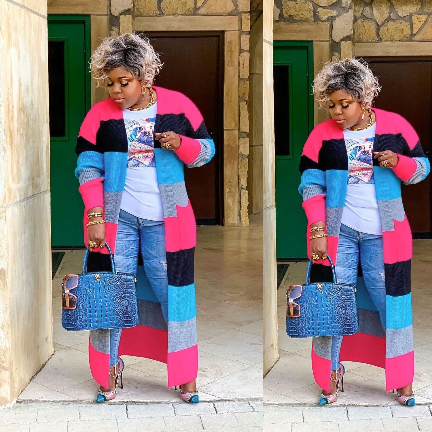 Sweater Long Sleeve Contrast Color Sweater Cardigan (CL11037)