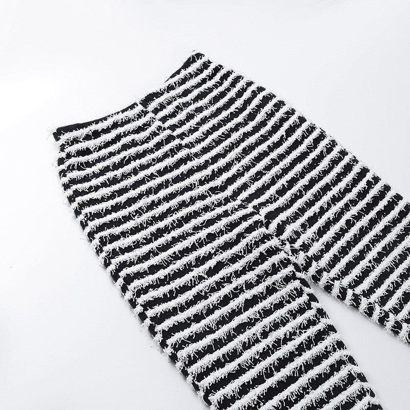 Texture Fluff Slim-Fit Striped Casual Pants(CL11290)
