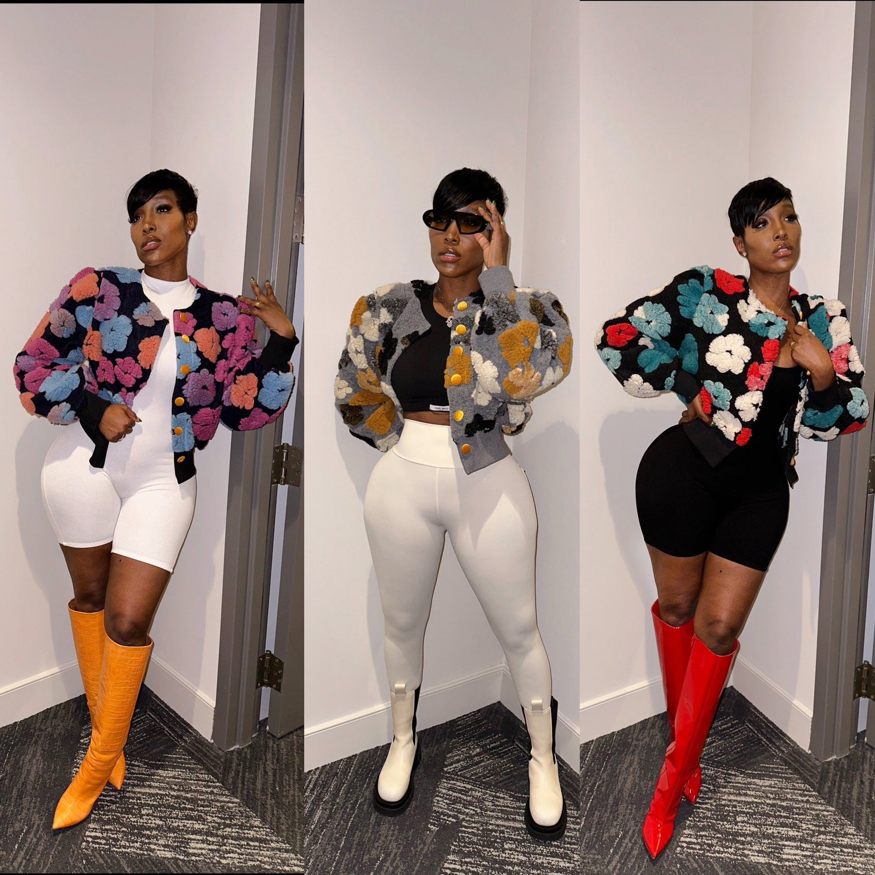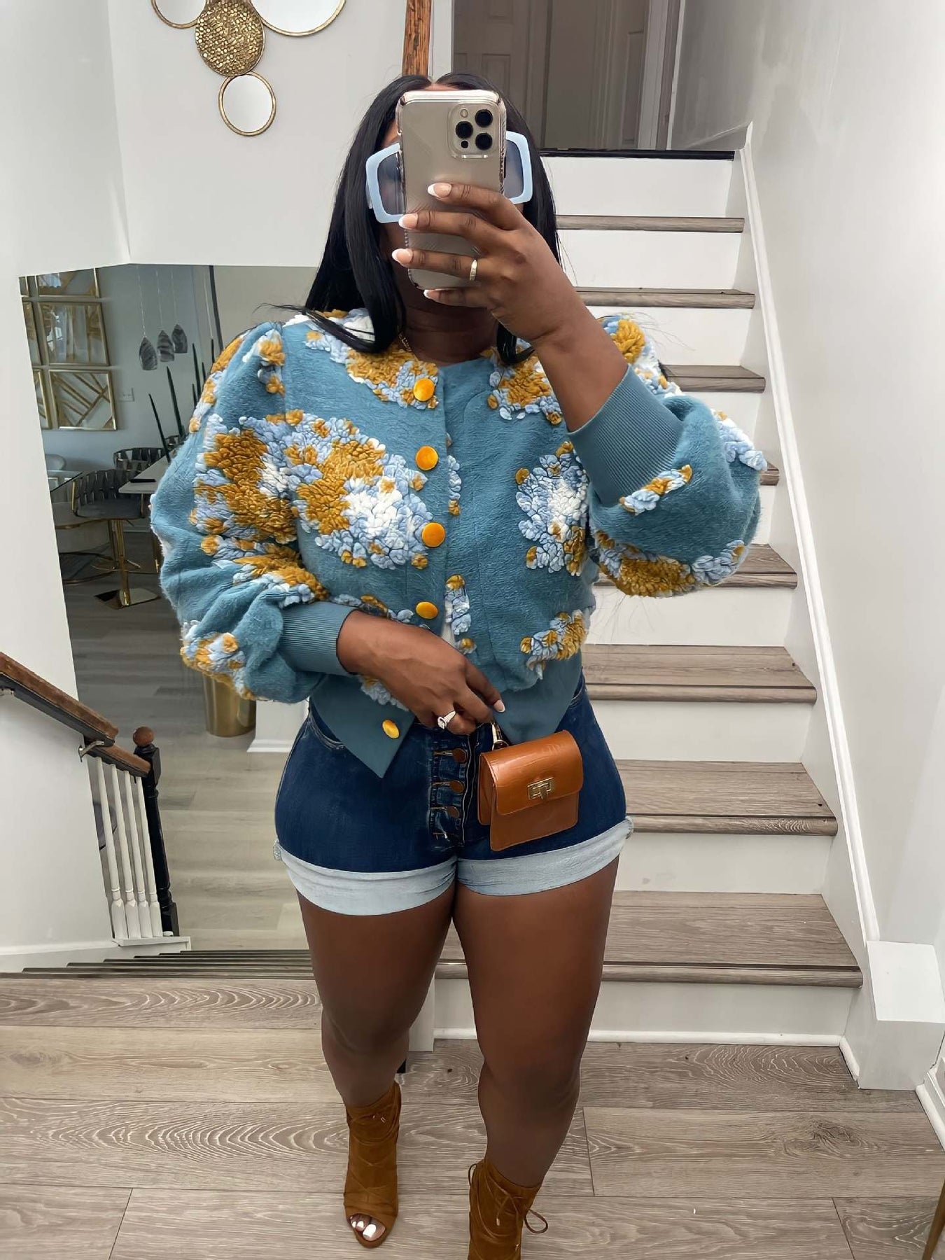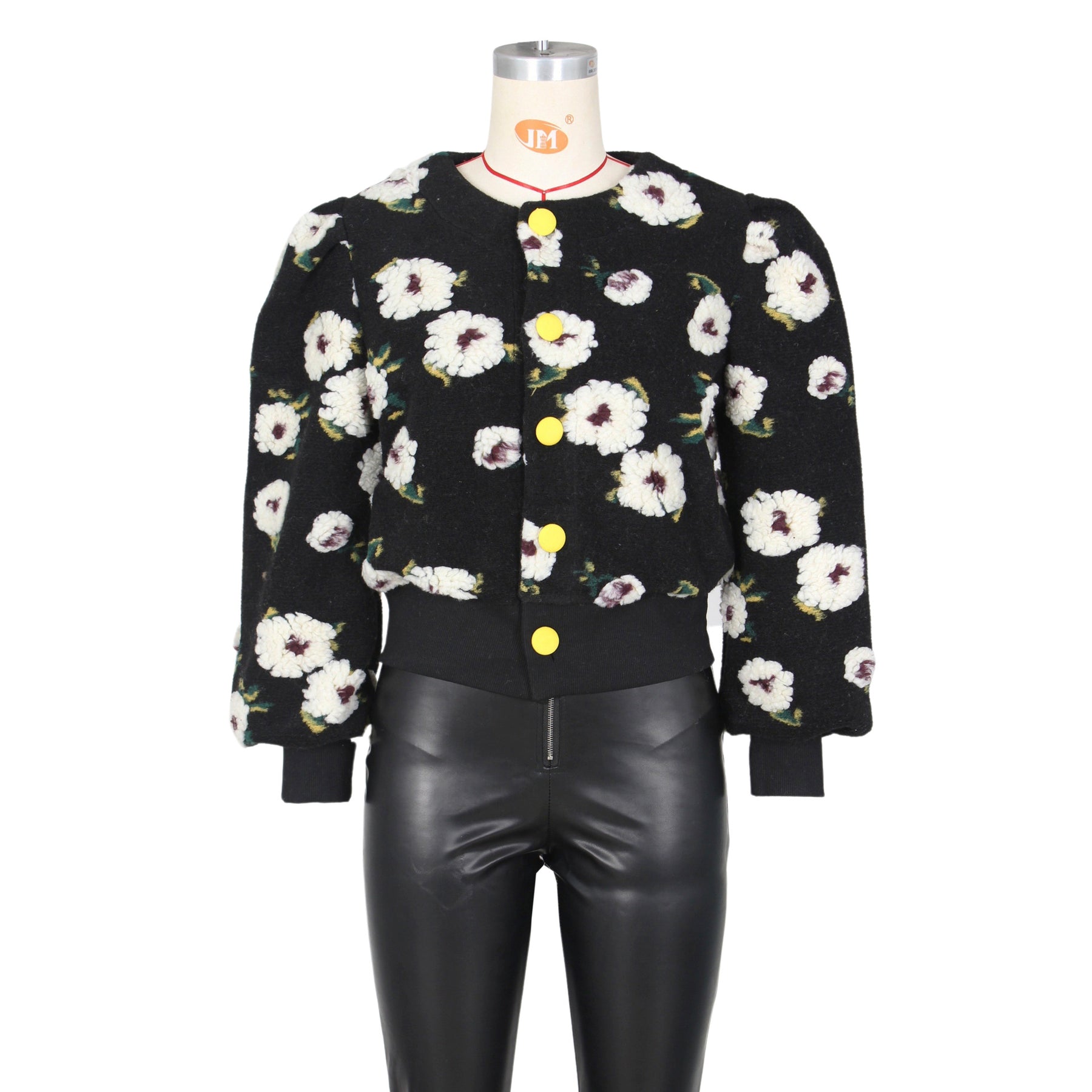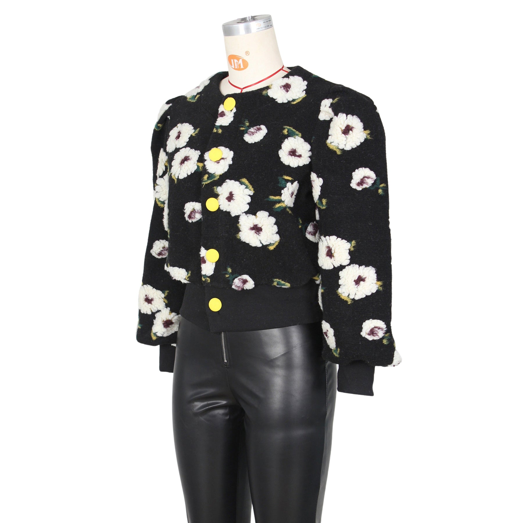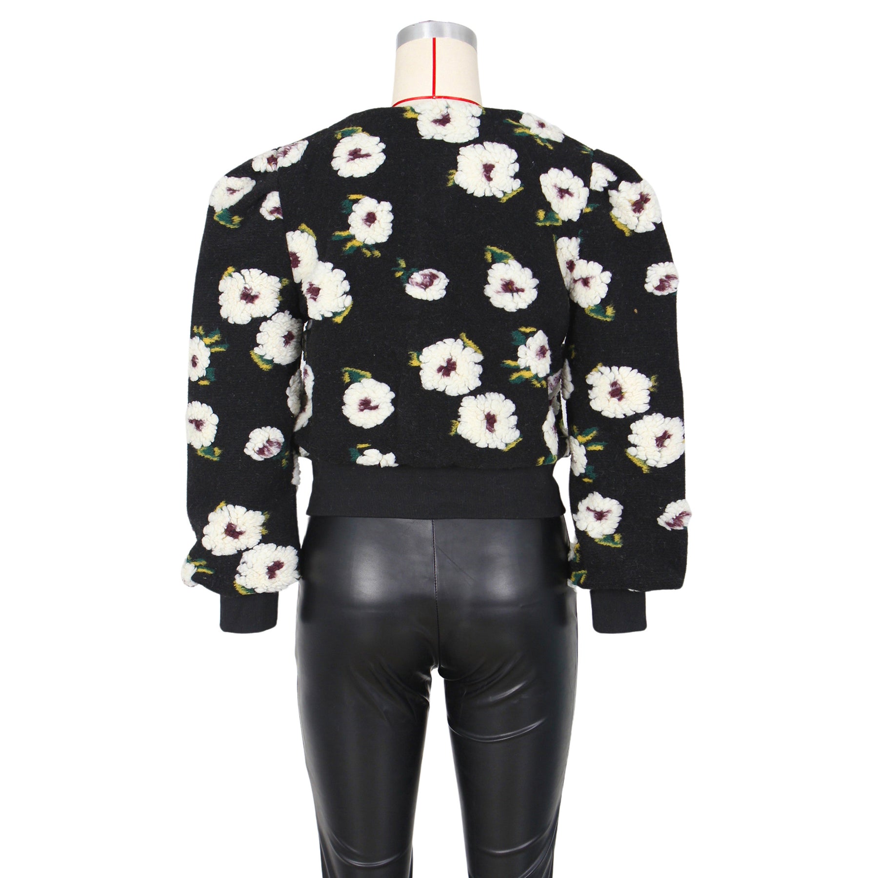 Three-dimensional floral single-breasted cardigan short coat(CL12012)