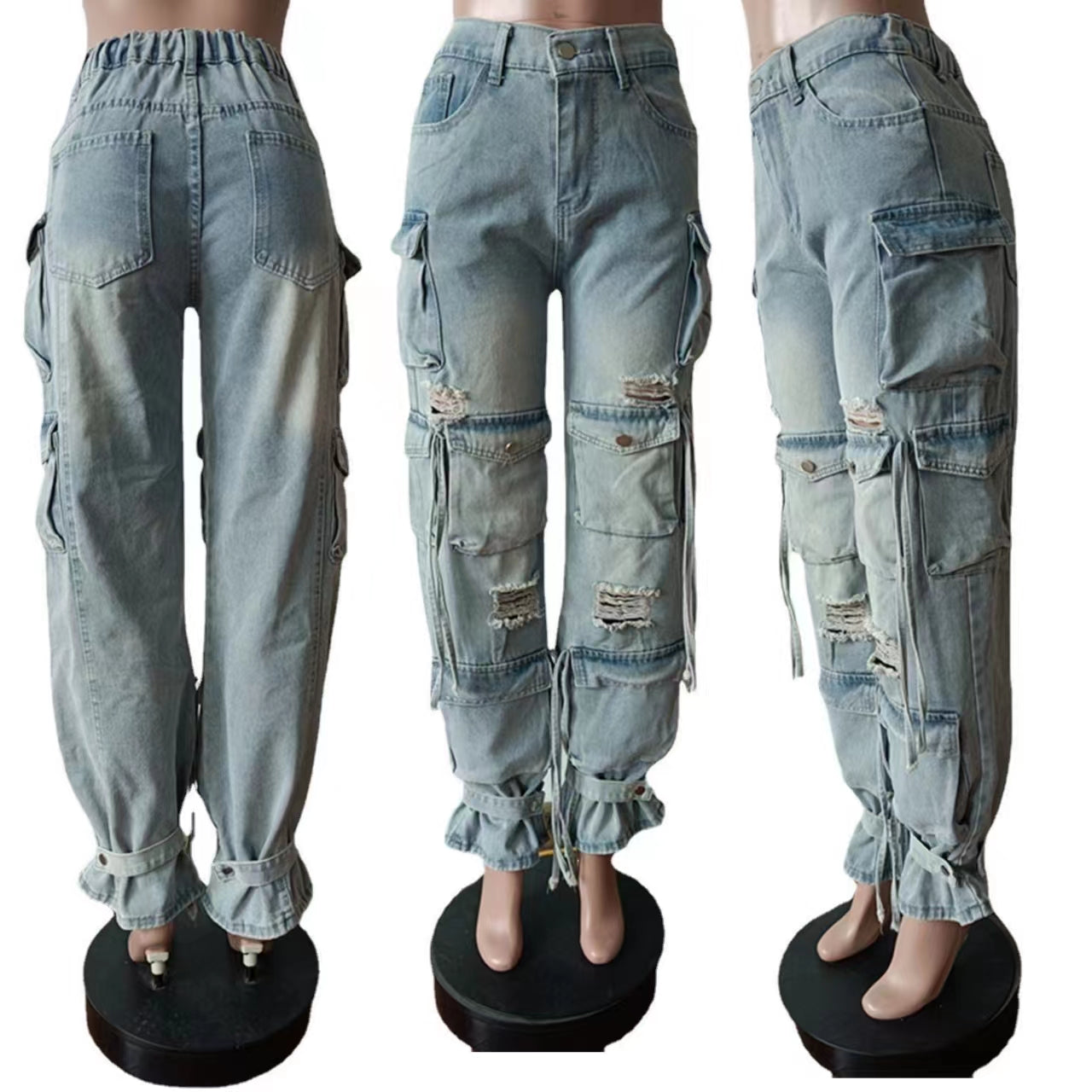 Three-Dimensional Multi-Pocket Retro Casual Jeans(CL11739)