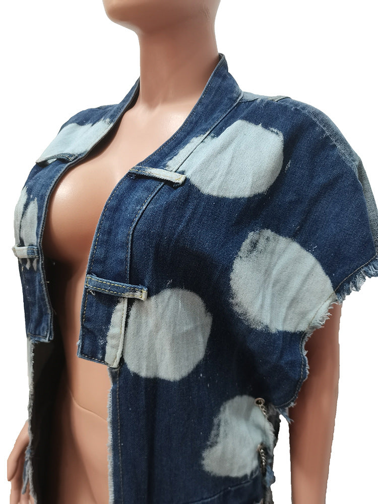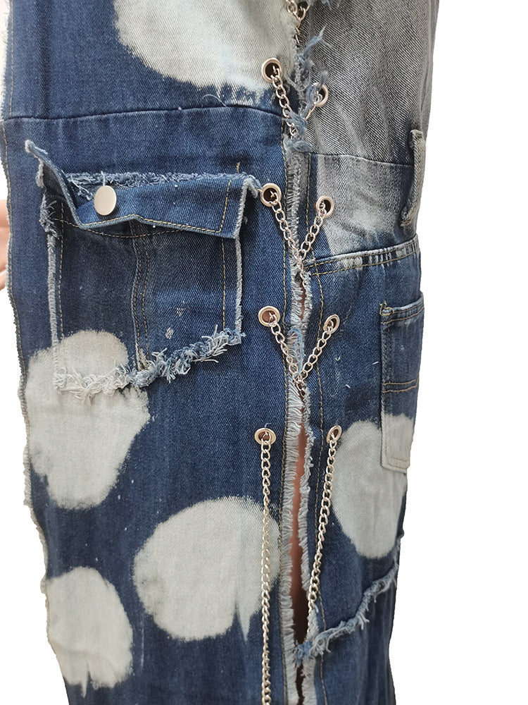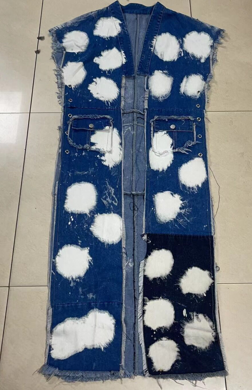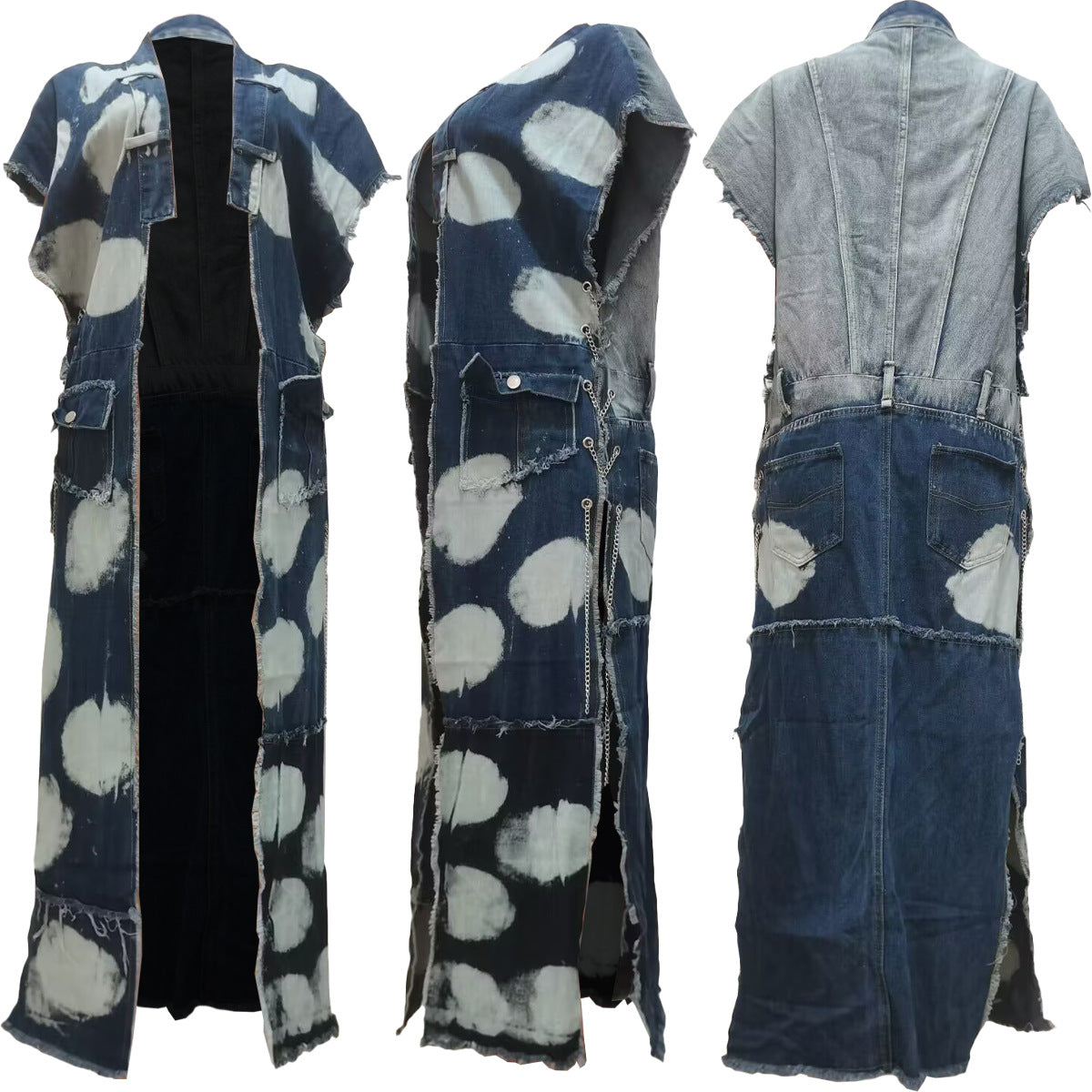 Wash-paneled multi-bag machine eye chain denim coat(CL12010) Need to wait!!