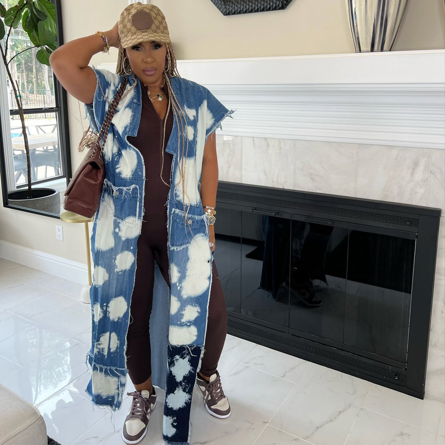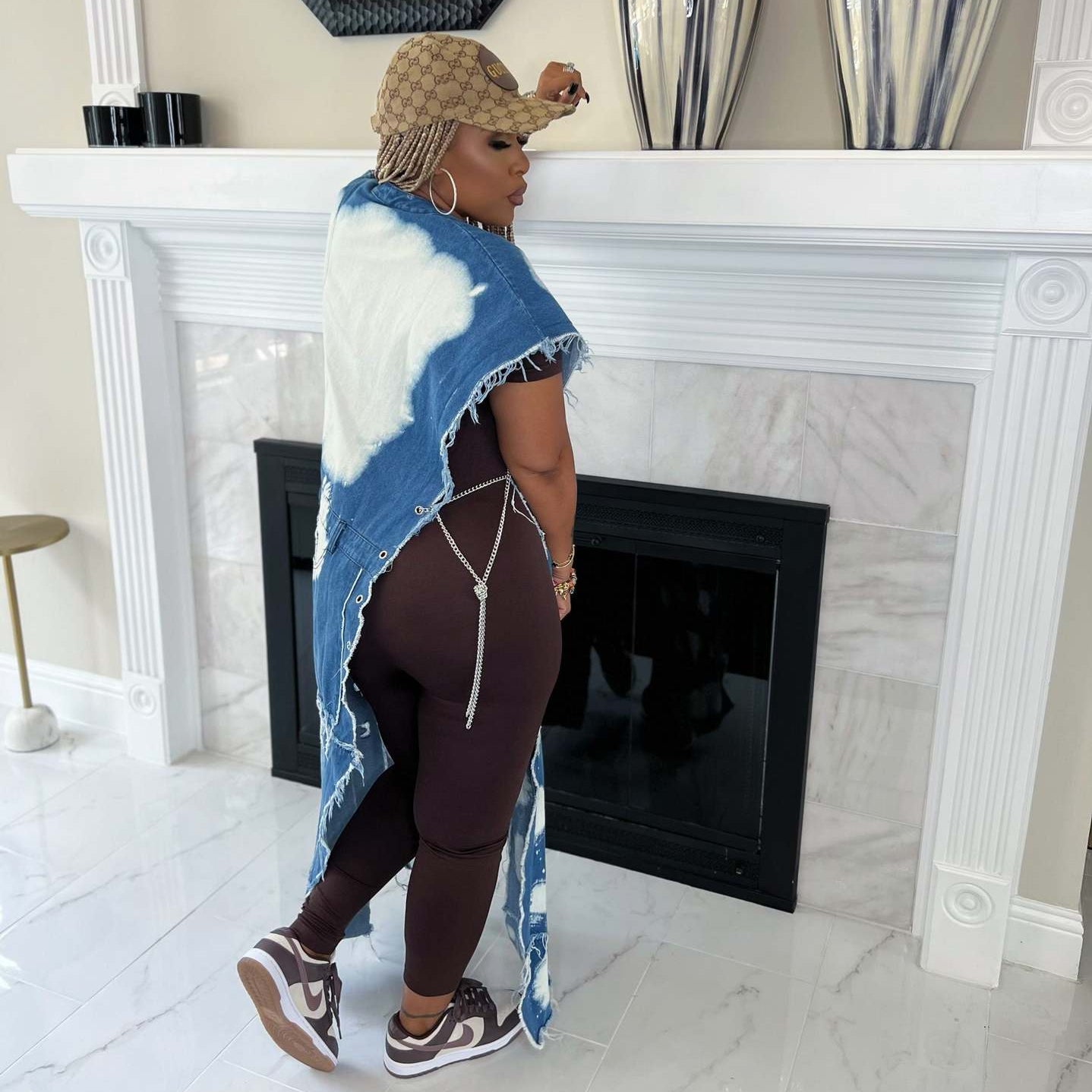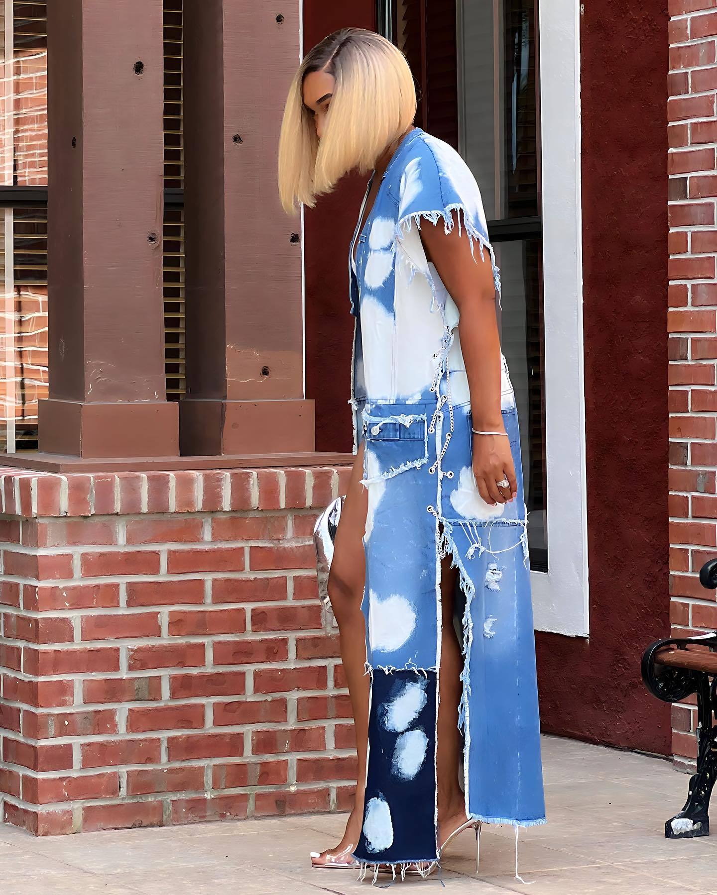Wash-paneled multi-bag machine eye chain denim coat(CL12010) Need to wait!!