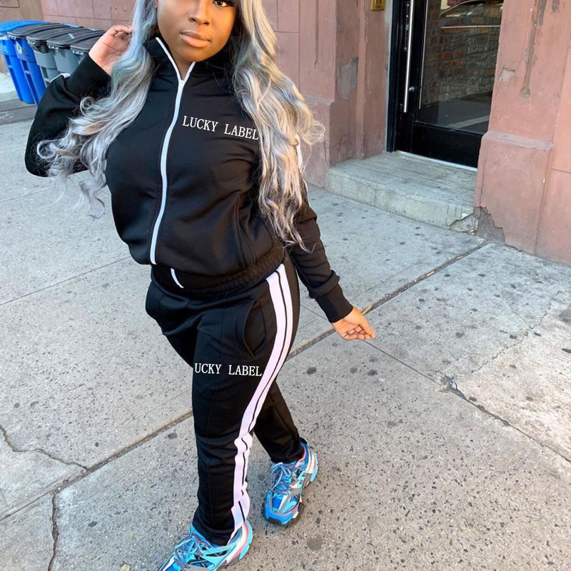 Lucky Label Zipper Jogger Tracksuit Sets (OC9386)