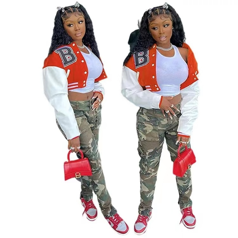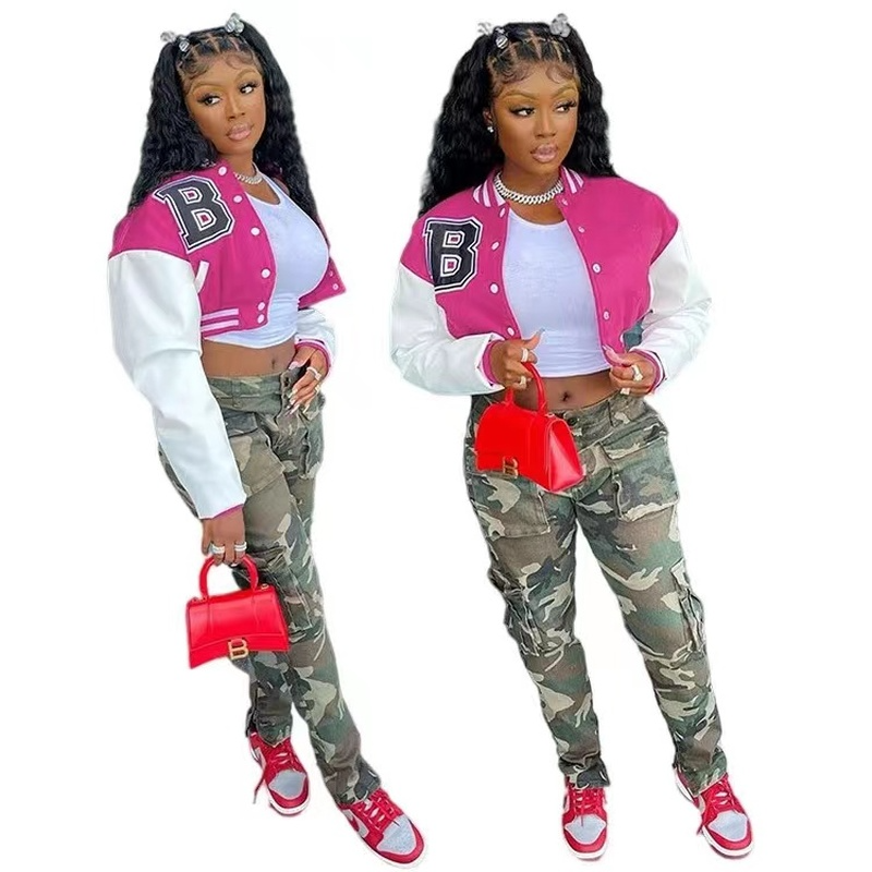 Wholesale fashion letter printed Baseball Jacket(CL9520)