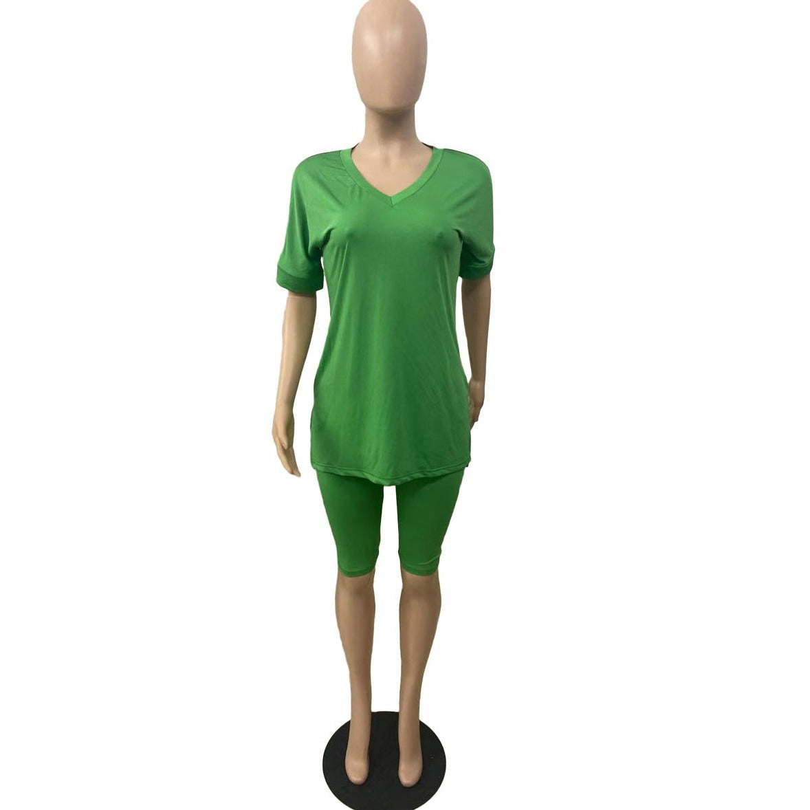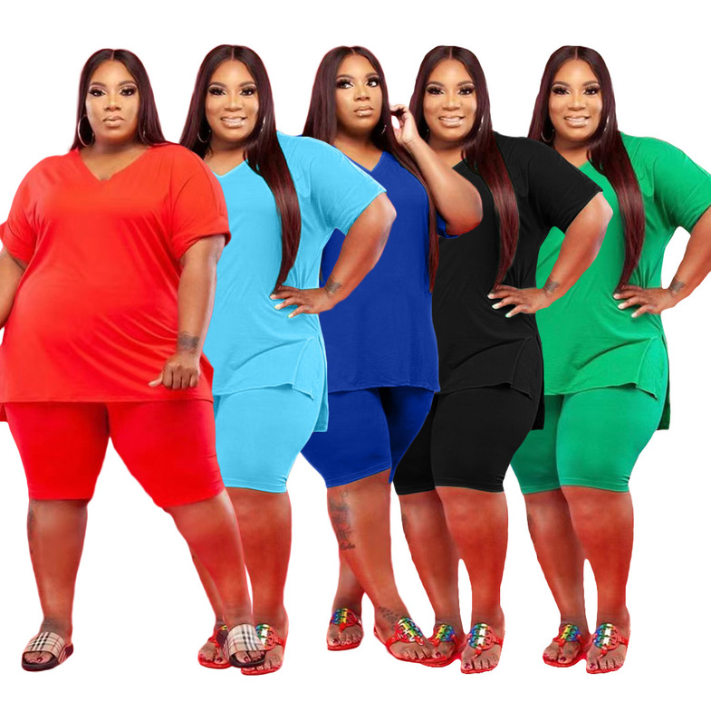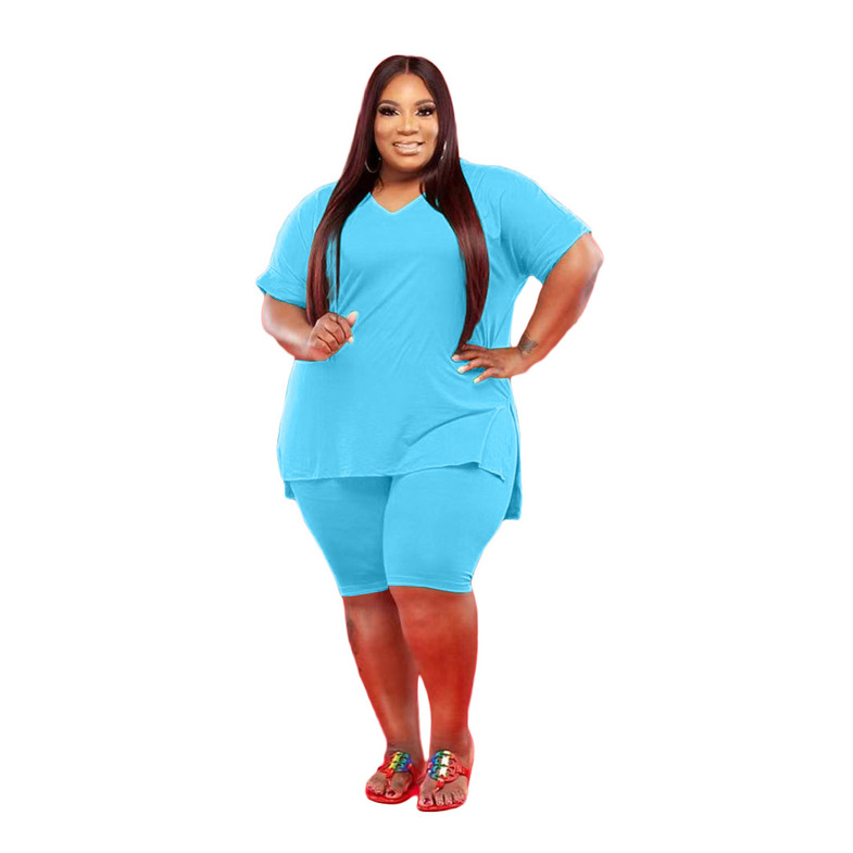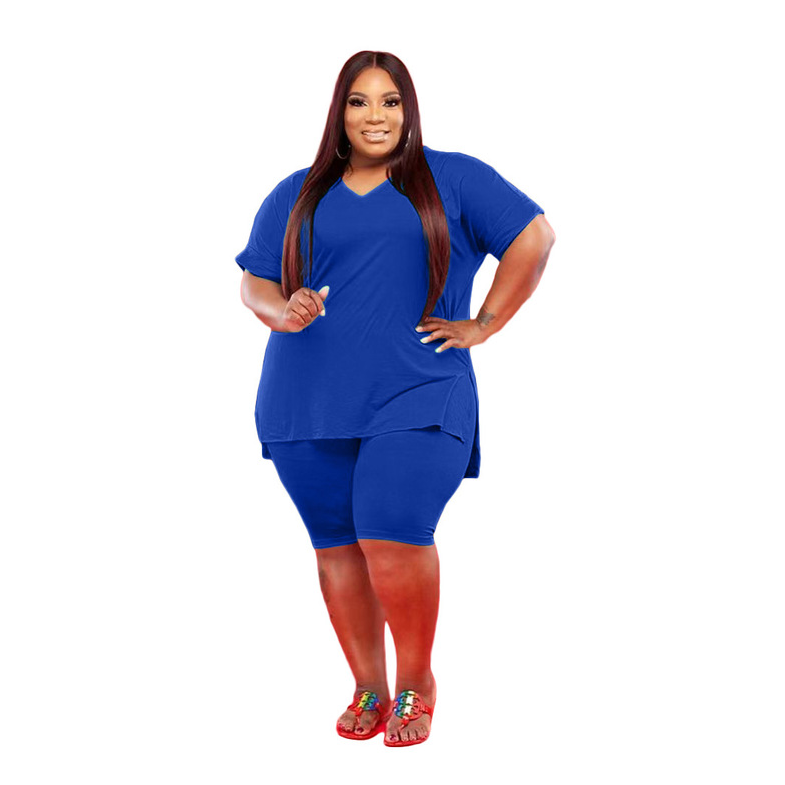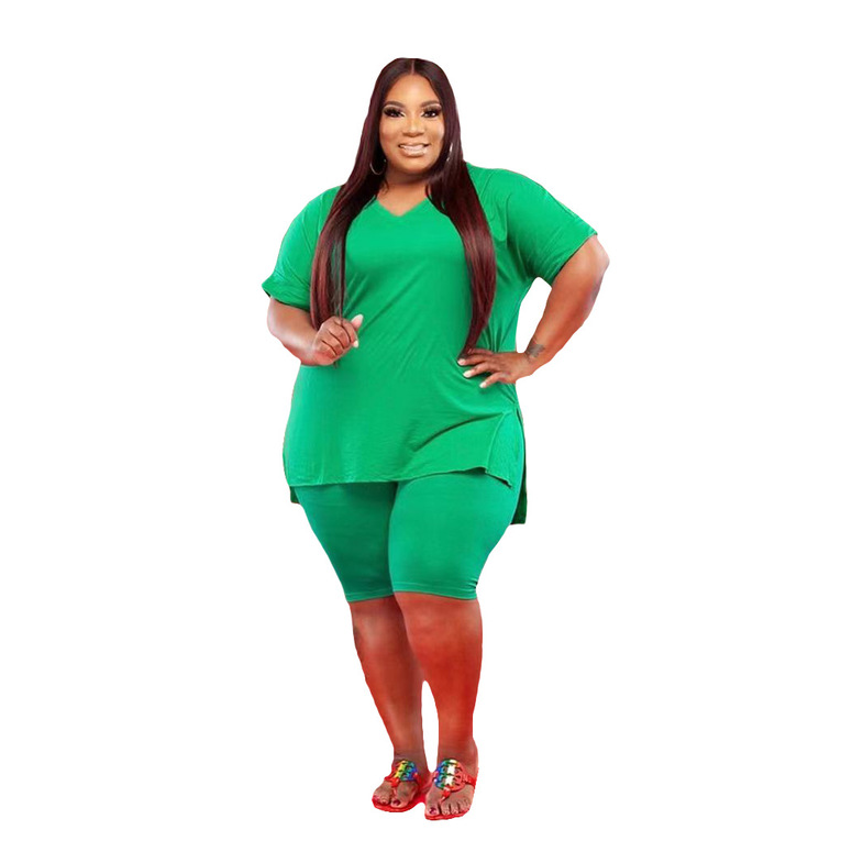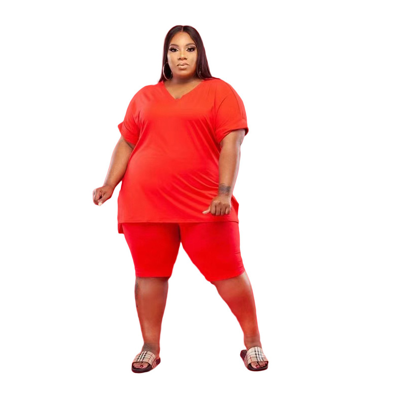 Wholesale fashion V-neck plus size 5x solid color leisure 2PCS(CL8815)