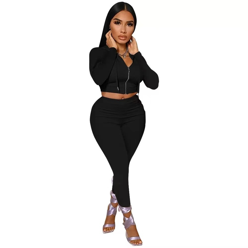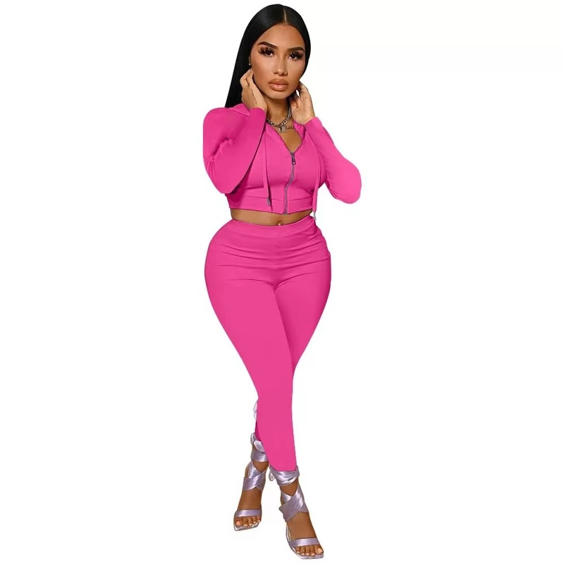 Wholesale hooded fashion leisure solid color sportswear 2PC(CL9348)