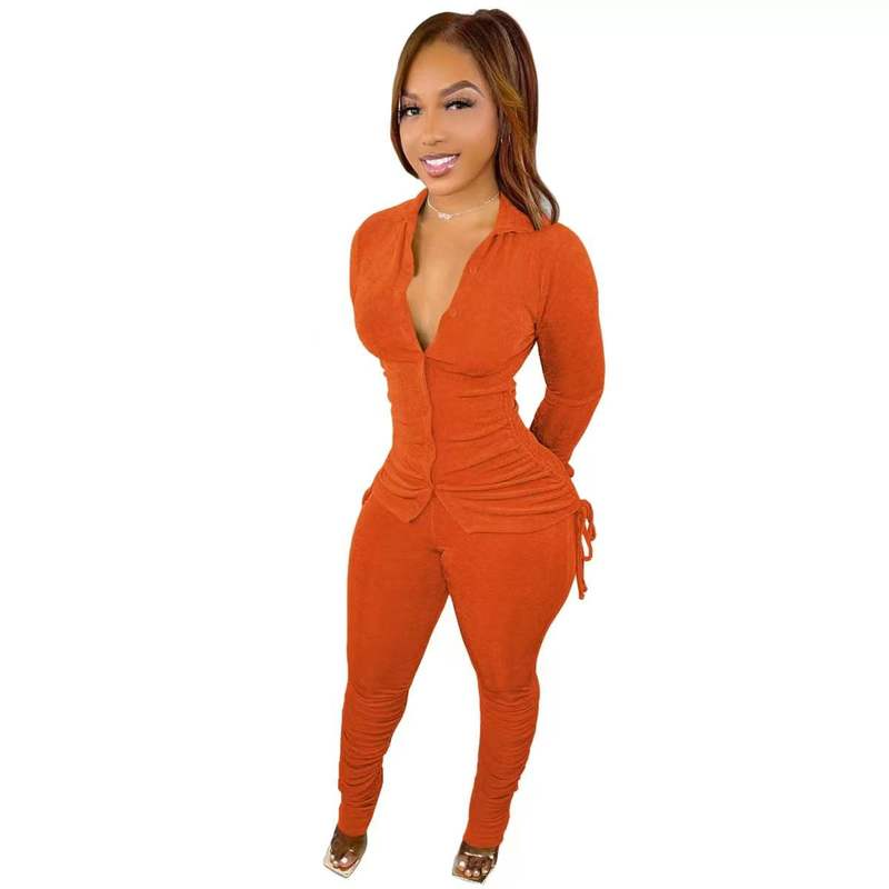 Wholesale Lapel button pleated high waist slim suit 2PC(CL9737)