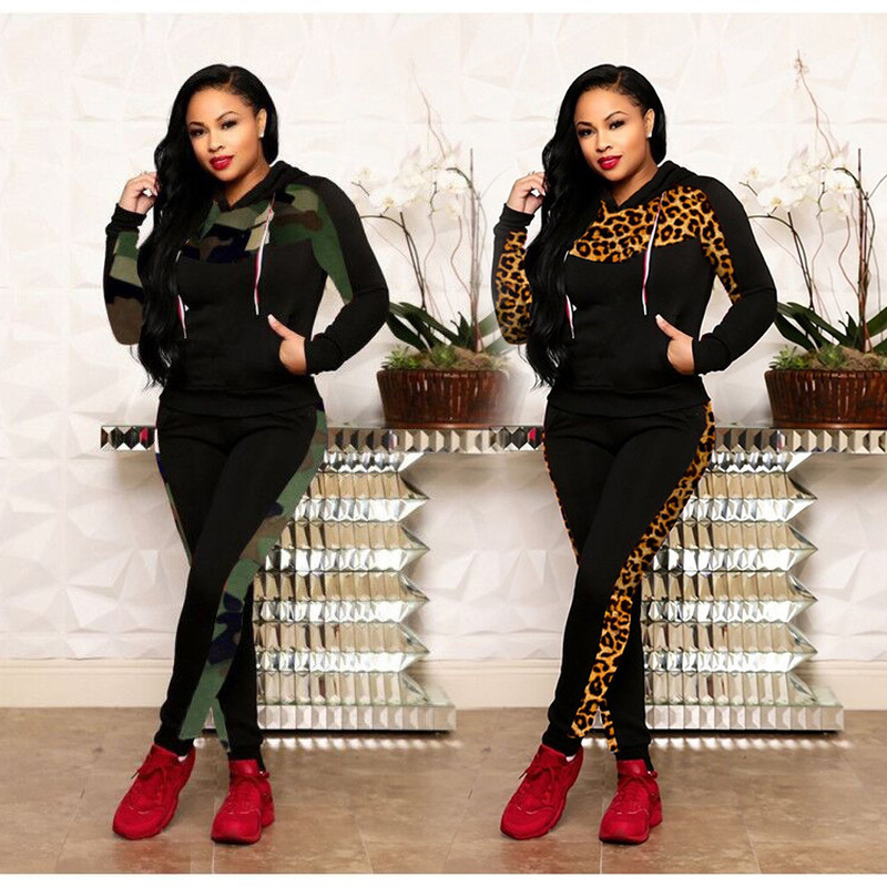 Wholesale leopard stitching casual Hoodie set 2PC(CL9350)
