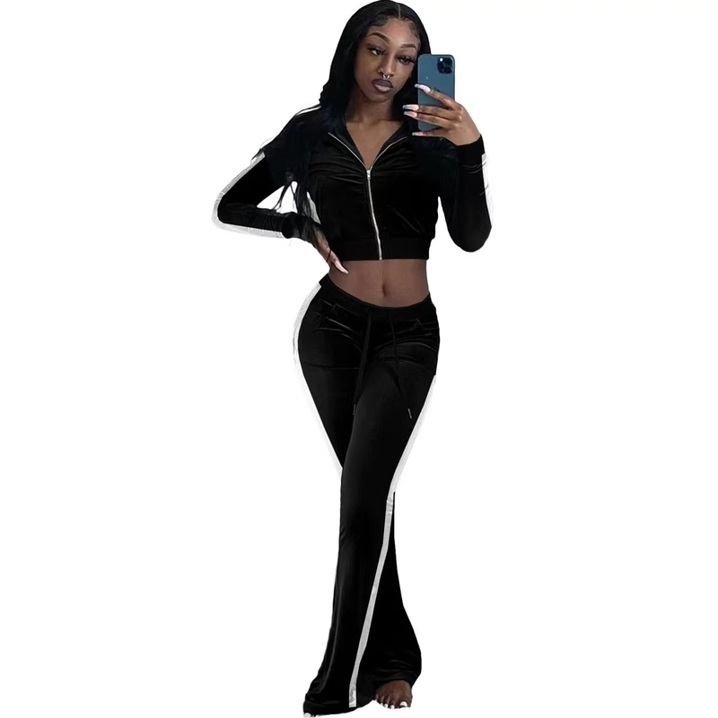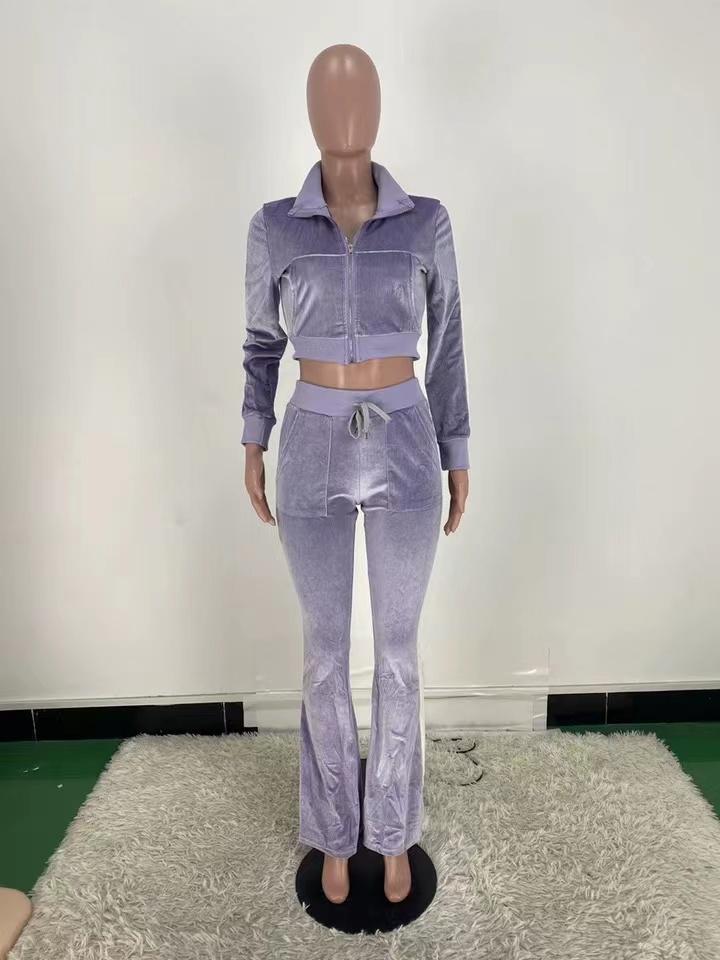 Wholesale rib color flared pants velvet set 2PC(CL9357)