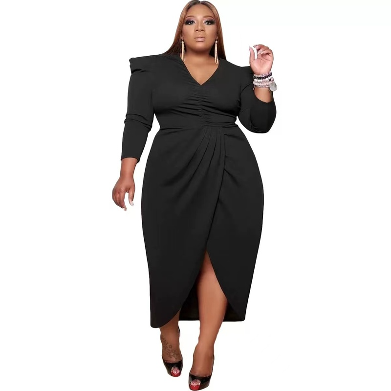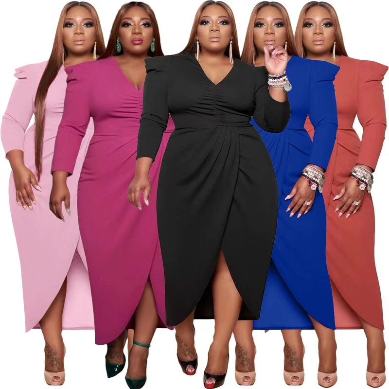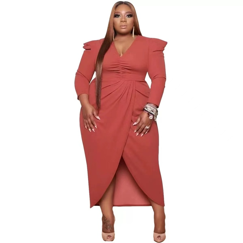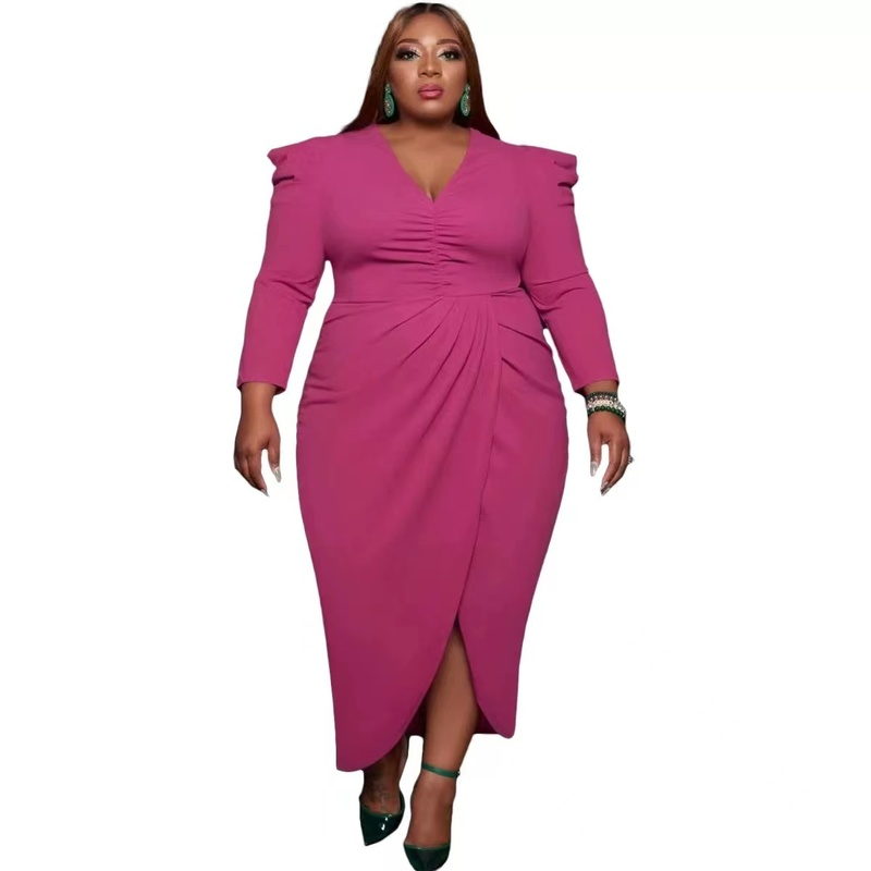 Wholesale sexy plus size V-Neck long sleeve dress(CL9562)