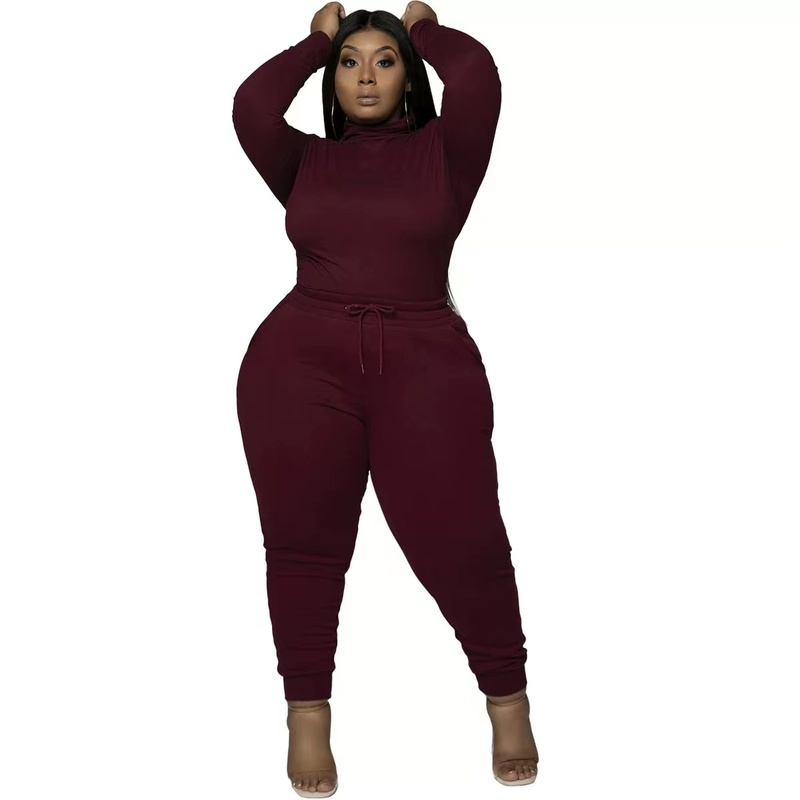 Wholesale solid color large long sleeve leisure suit 2PC(CL9478)