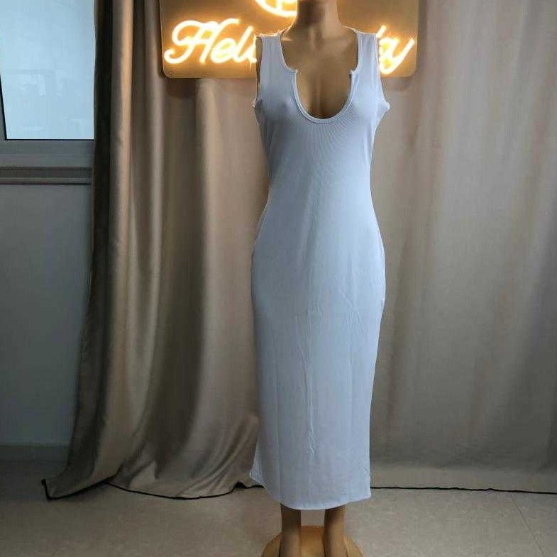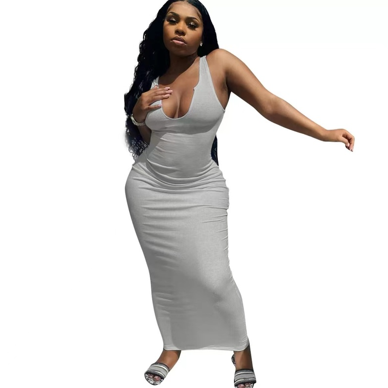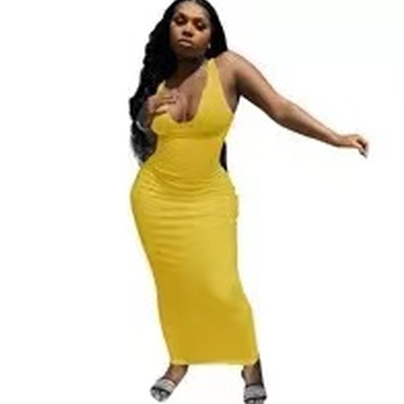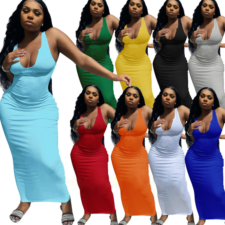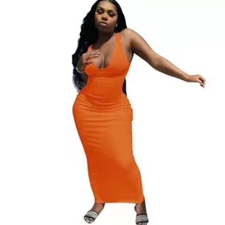 lekima.myshopify.com Wholesale suspender vest deep V-neck slim sexy long skirt(CL8865)