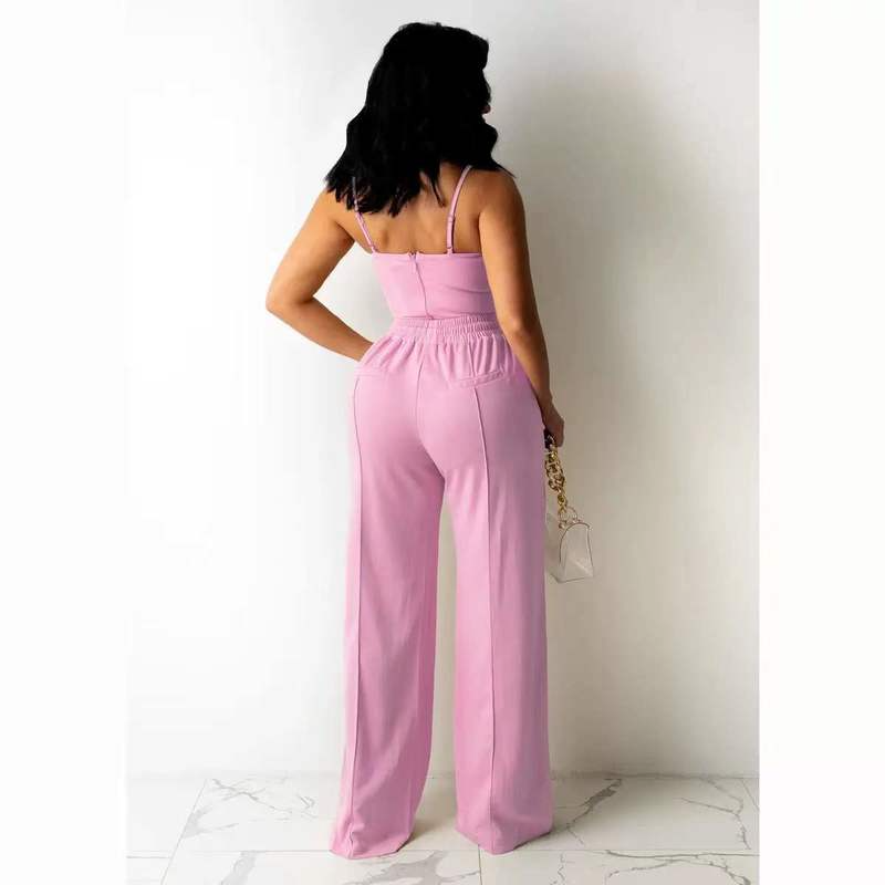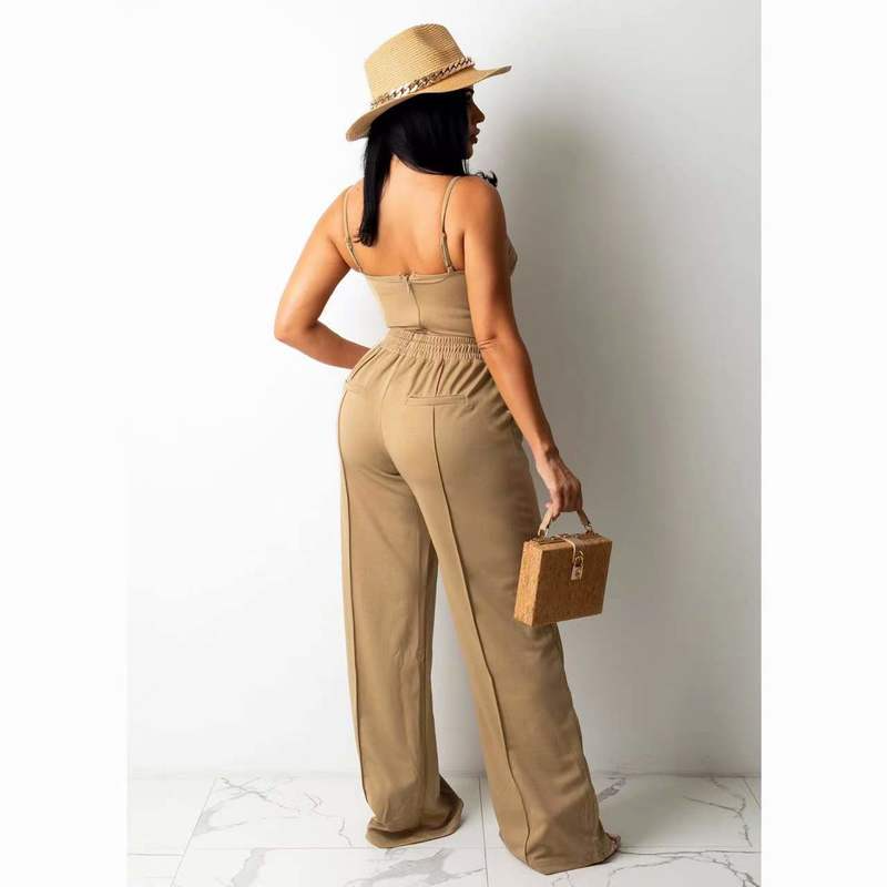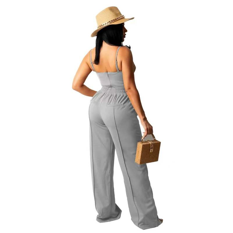 Wholesale suspender vest drawstring wide leg suit 2PC(CL9726)