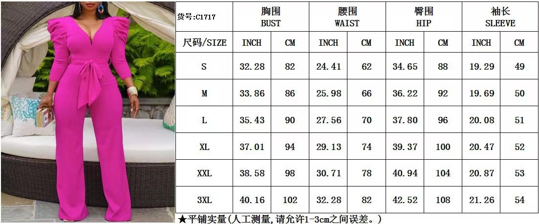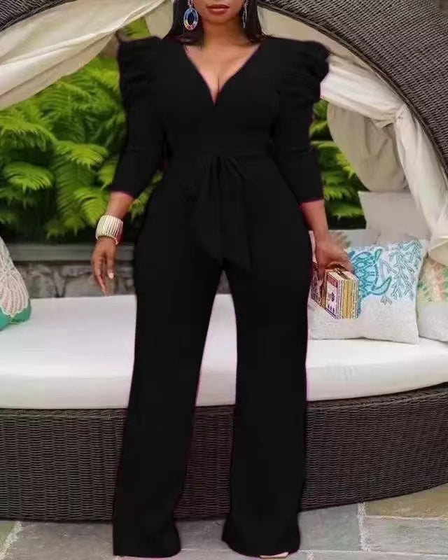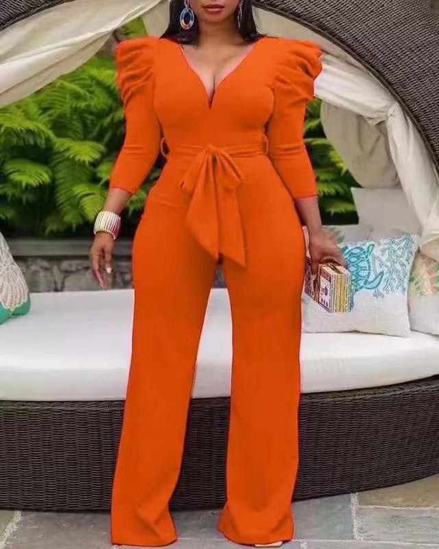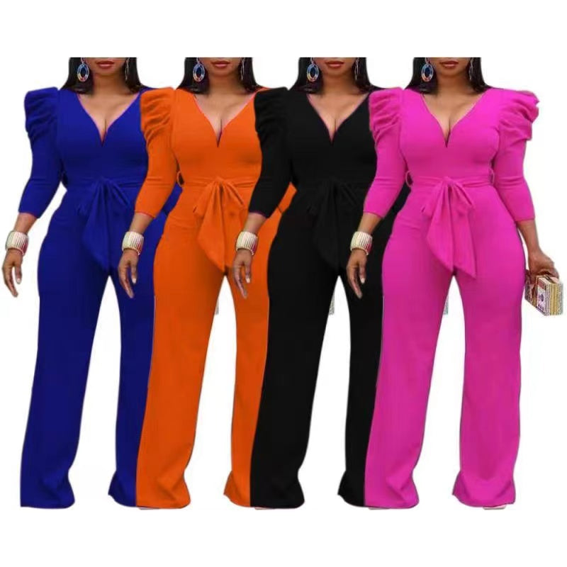 Wholesale temperament commuter V-neck pants jumpsuit with belt(CL9454)