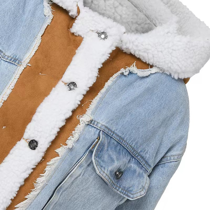 Wholesale thickened fur integrated cowboy coat women's hooded jacket cotton coat(CL9595)