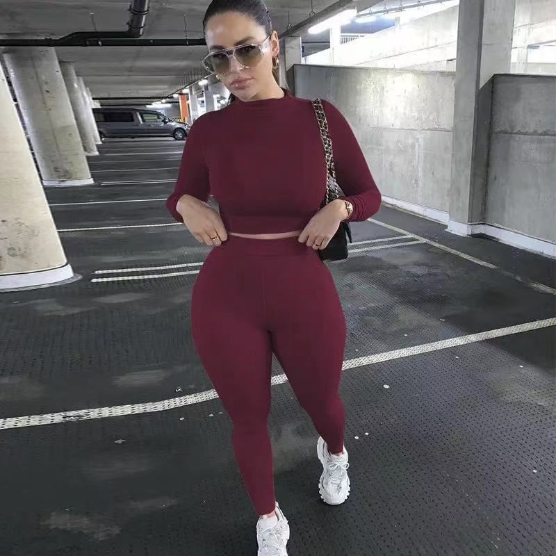 Wholesale women's casual two-piece slim long sleeve sports suit 2PC(CL9254)
