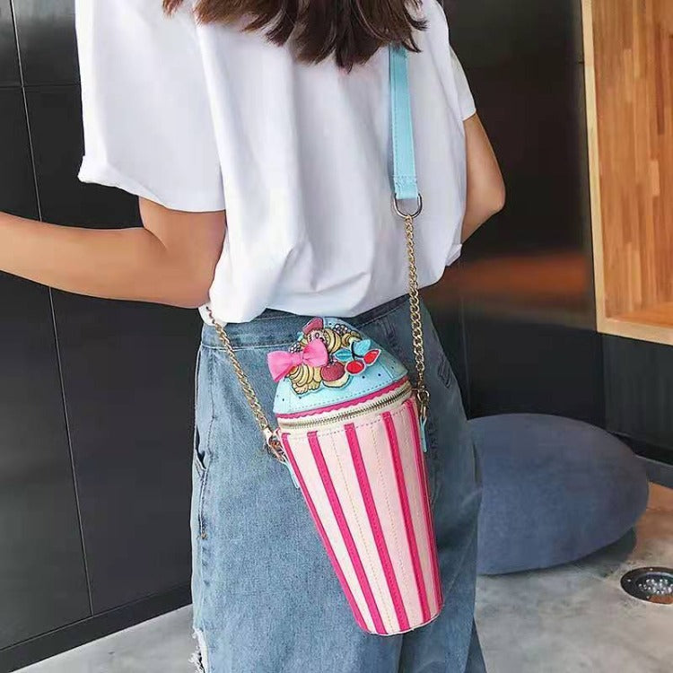 Wholesale women's color contrast ice cream bucket bag(BG8058)