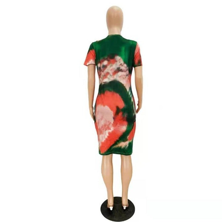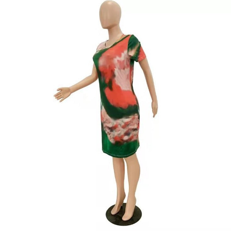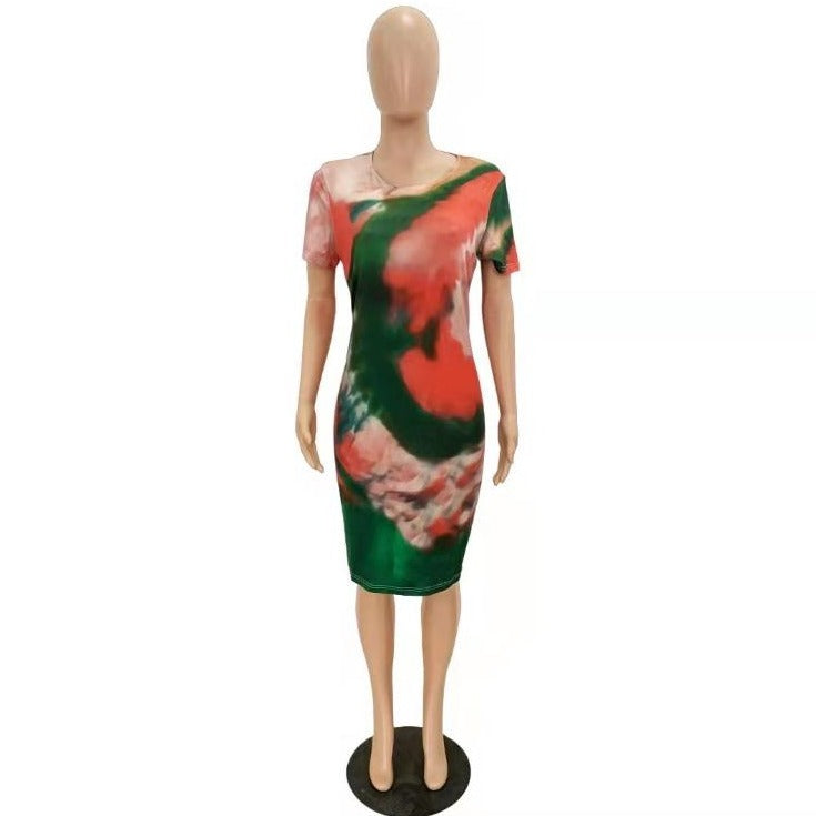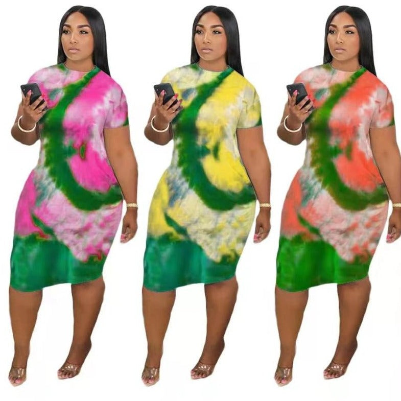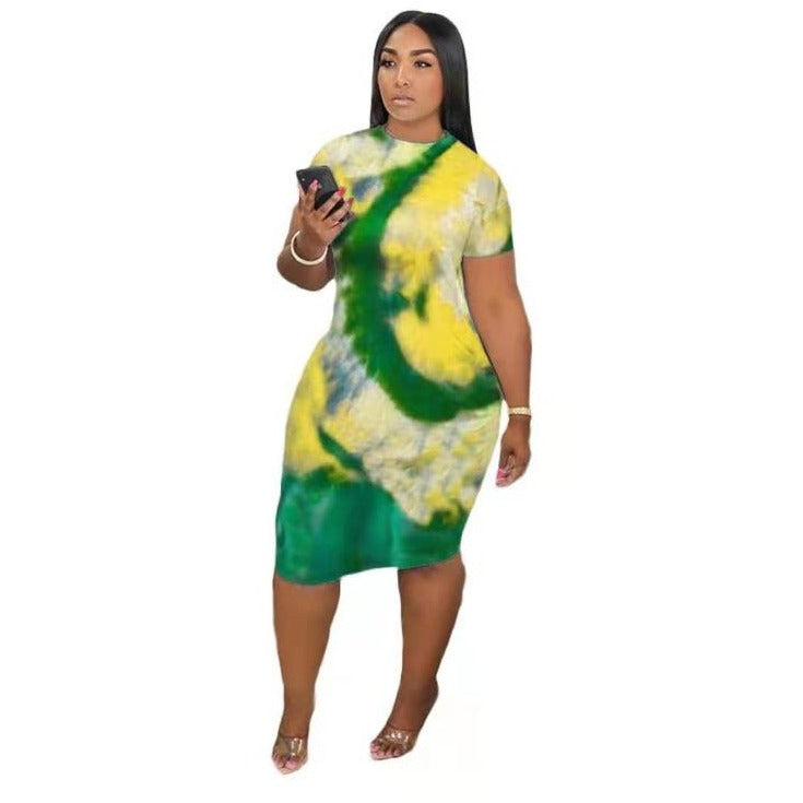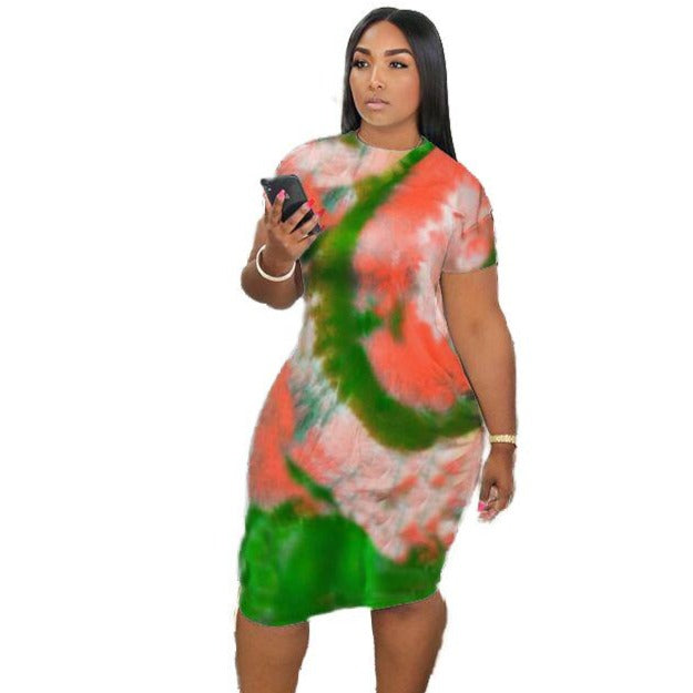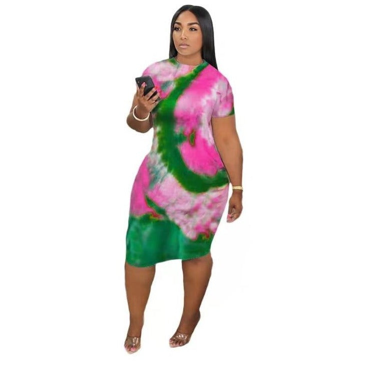 Wholesale women's fashion plus size tie-dye printed dress S-5XL(CL8718)