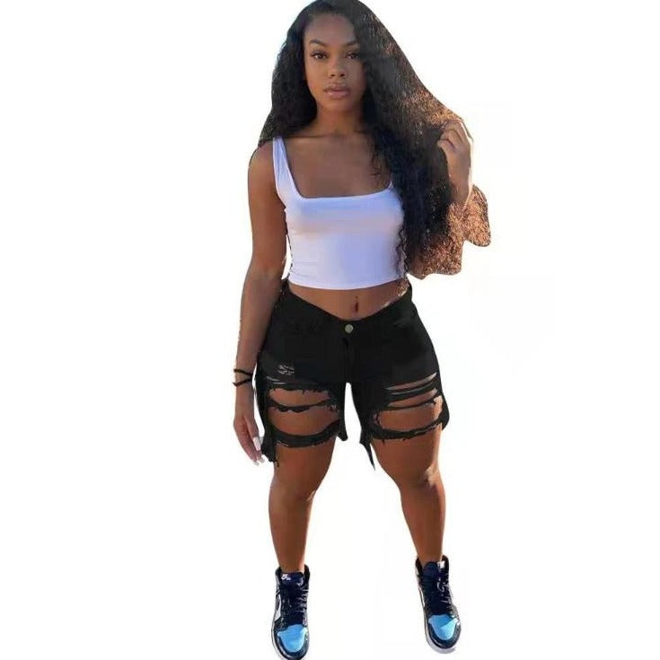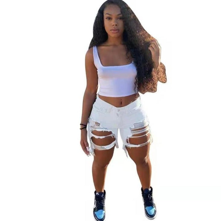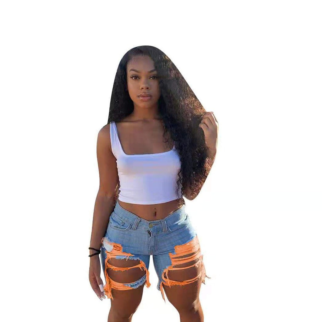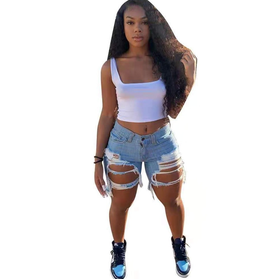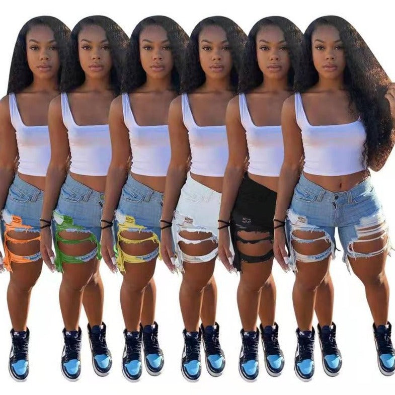 Wholesale women's sexy fringed denim shorts(CL8719)