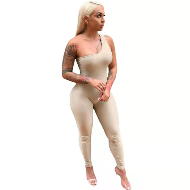 FREE SHIPPING women's sexy one-shoulder multicolor jumpsuit(FC8716)