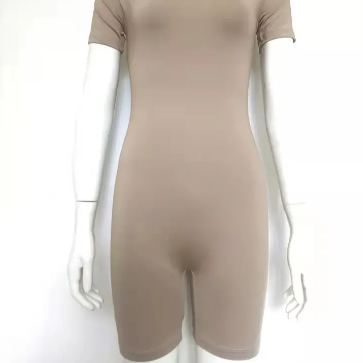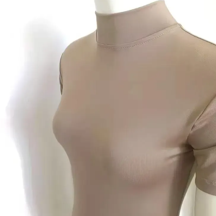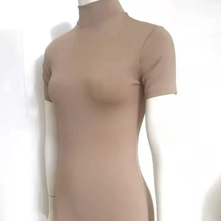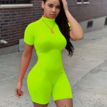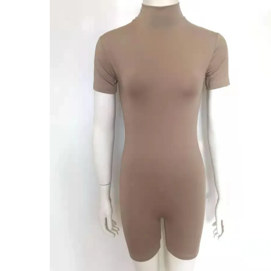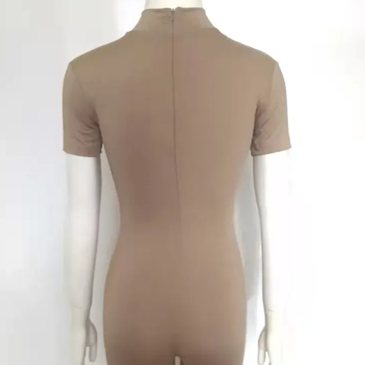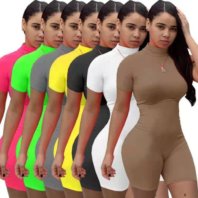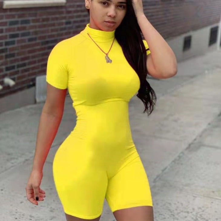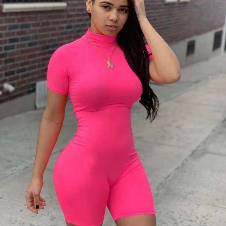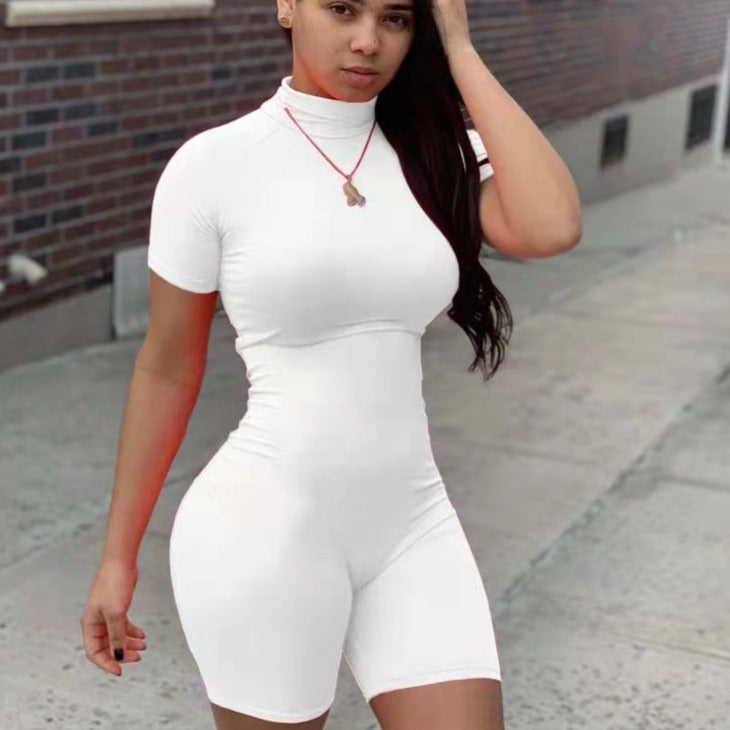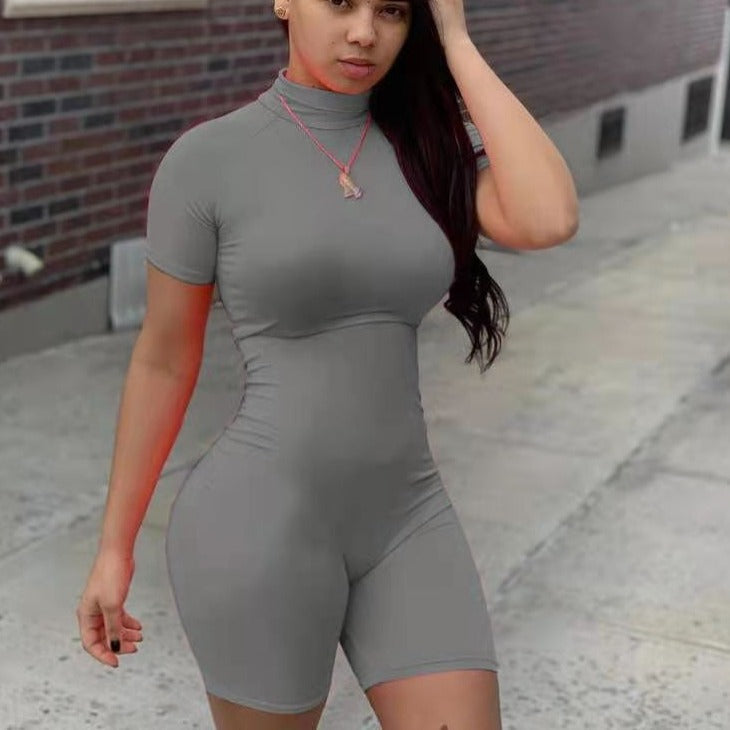 High Neck Short Sleeve Skinny Fitted Jumpsuit(OC8659)