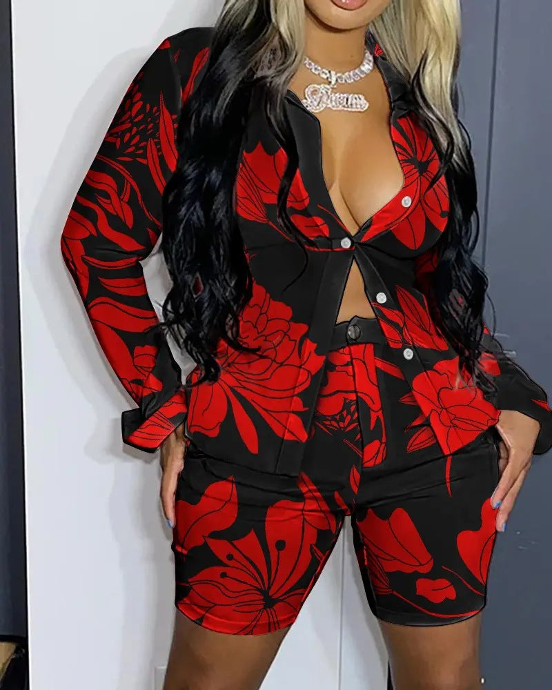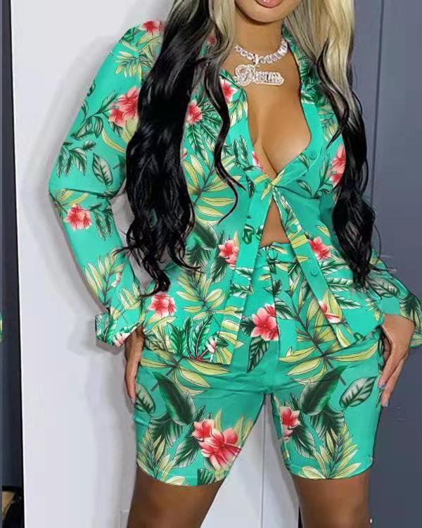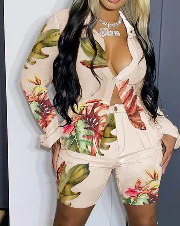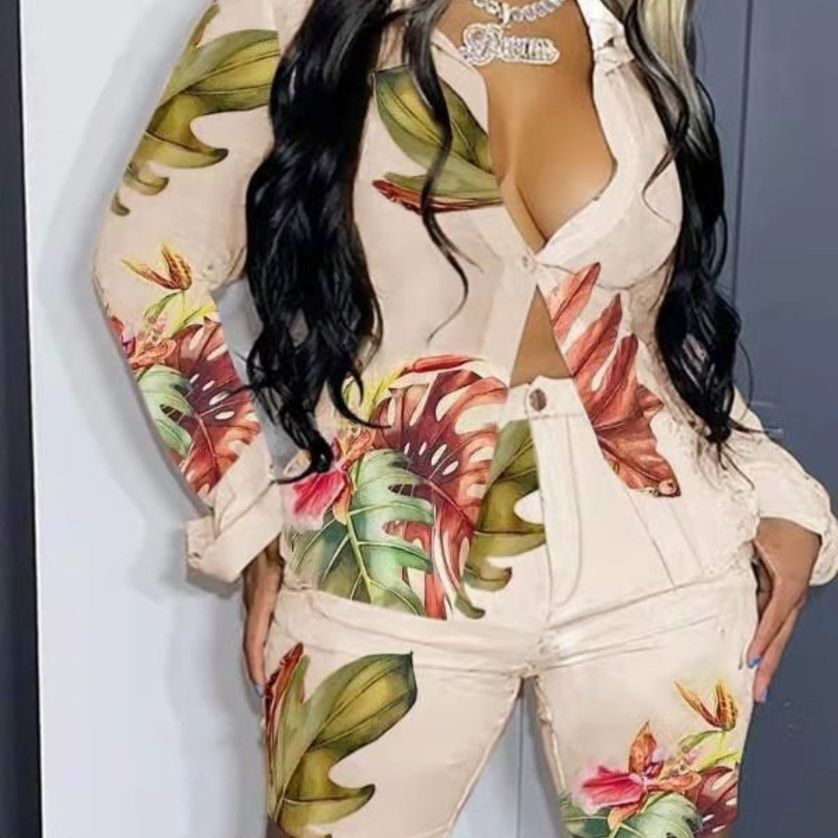 Women's fashion casual printed shirt pants two-piece set (CL10304)