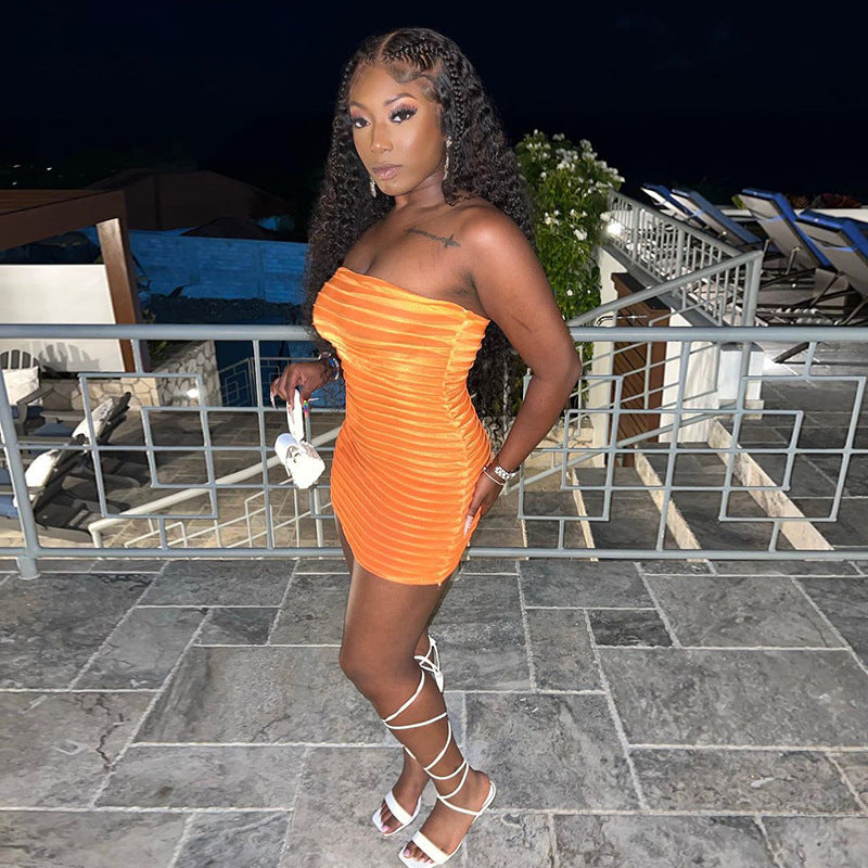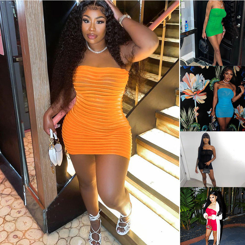 Women's Solid Color Sheer Mesh Sexy Bandeau Dress(CL11651)