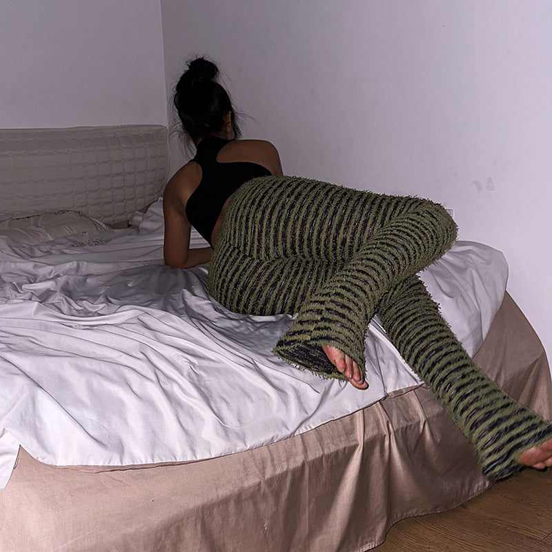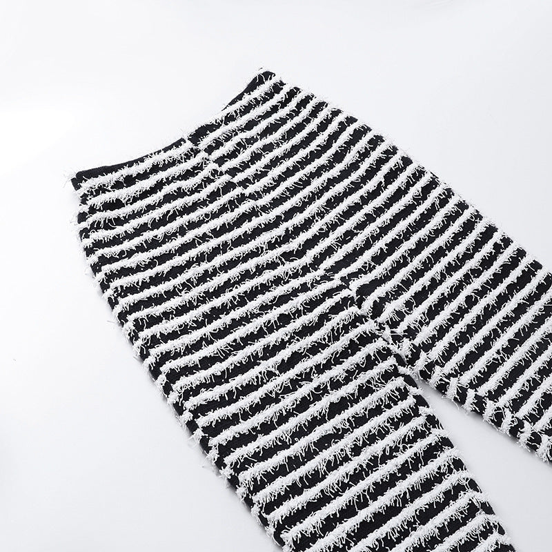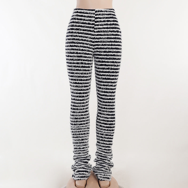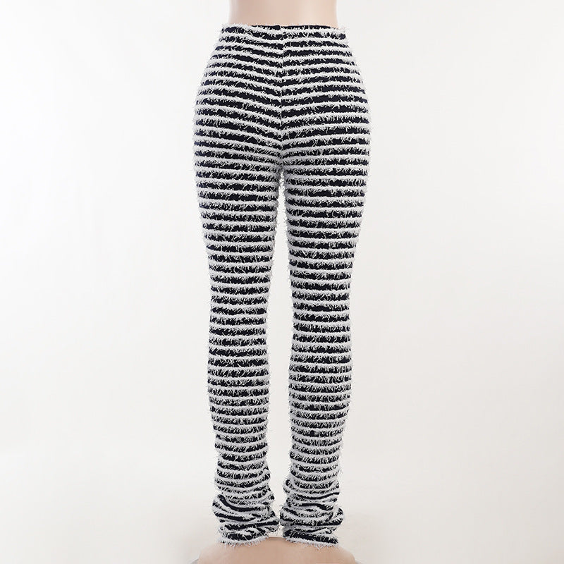 Woolen Striped High Waist Breech Casual Pants (CL11115)