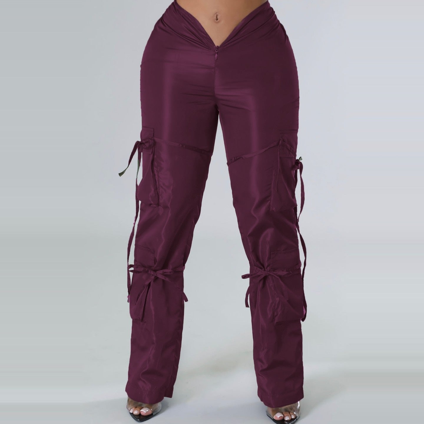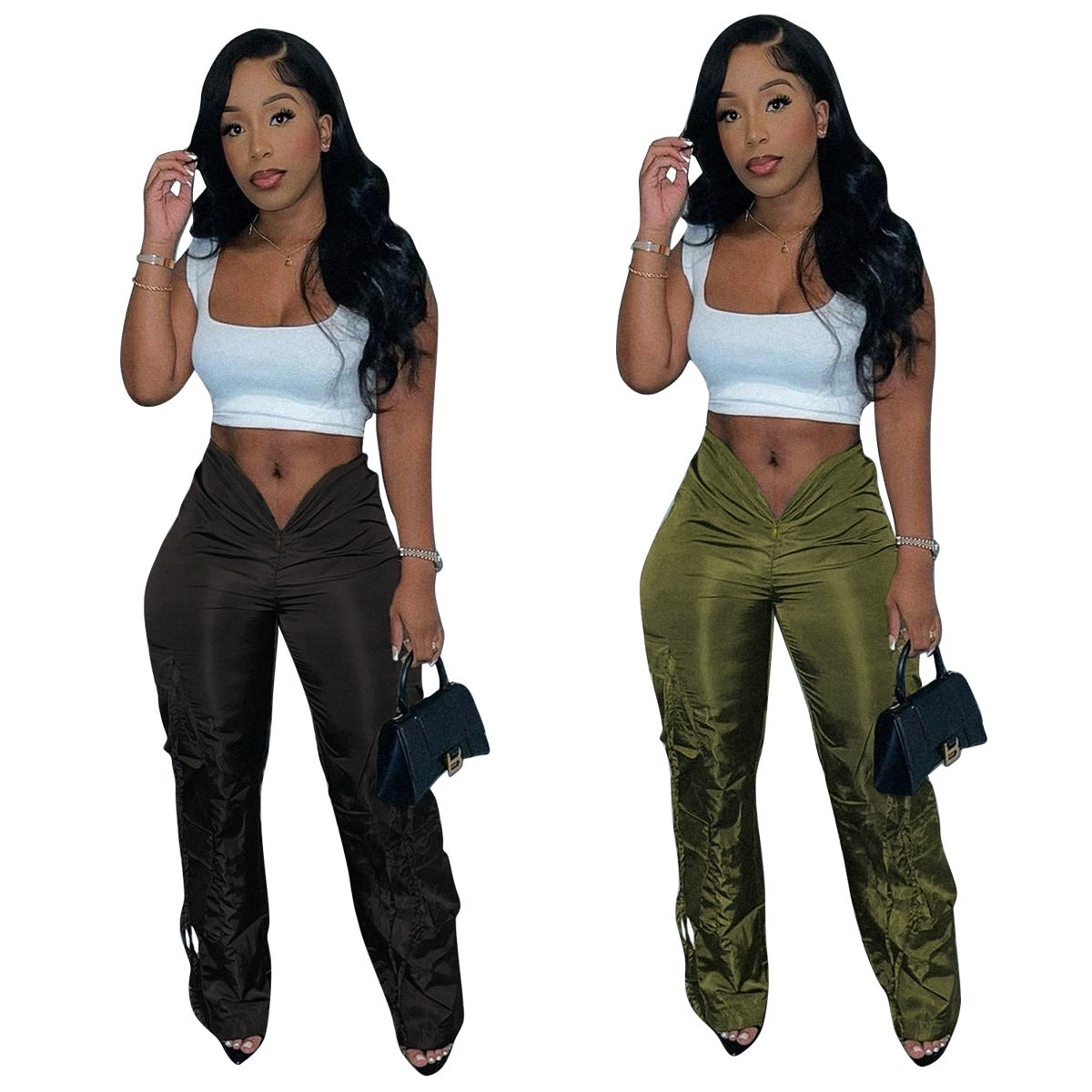 Zipper Closure Strap Solid Color Casual Trousers(CL10893)